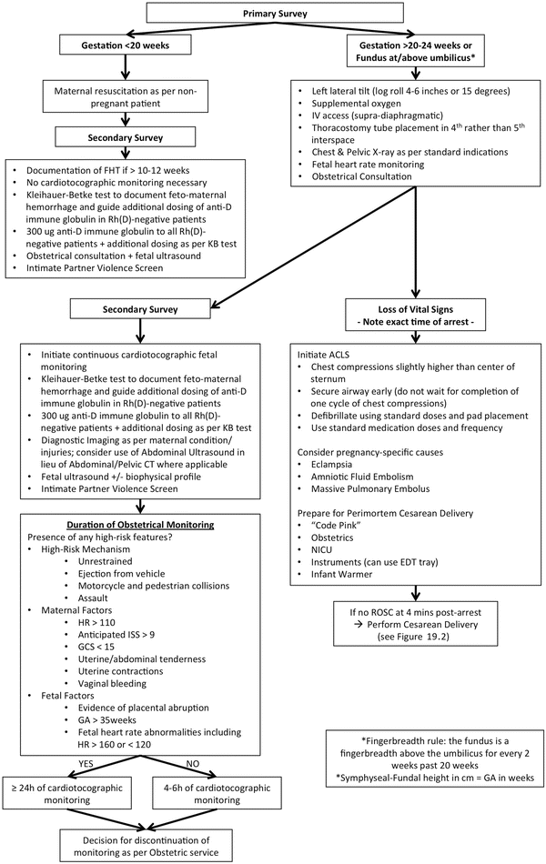 Eiriksson, L., Engels P.T. (2016). Trauma in Pregnancy. In: Gillman L., Widder S., Blaivas MD M., Karakitsos D. (eds) Trauma Team Dynamics. Springer, Cham. <https://link.springer.com/chapter/10.1007/978-3-319-16586-8_19>. (Dec 13, 2019).