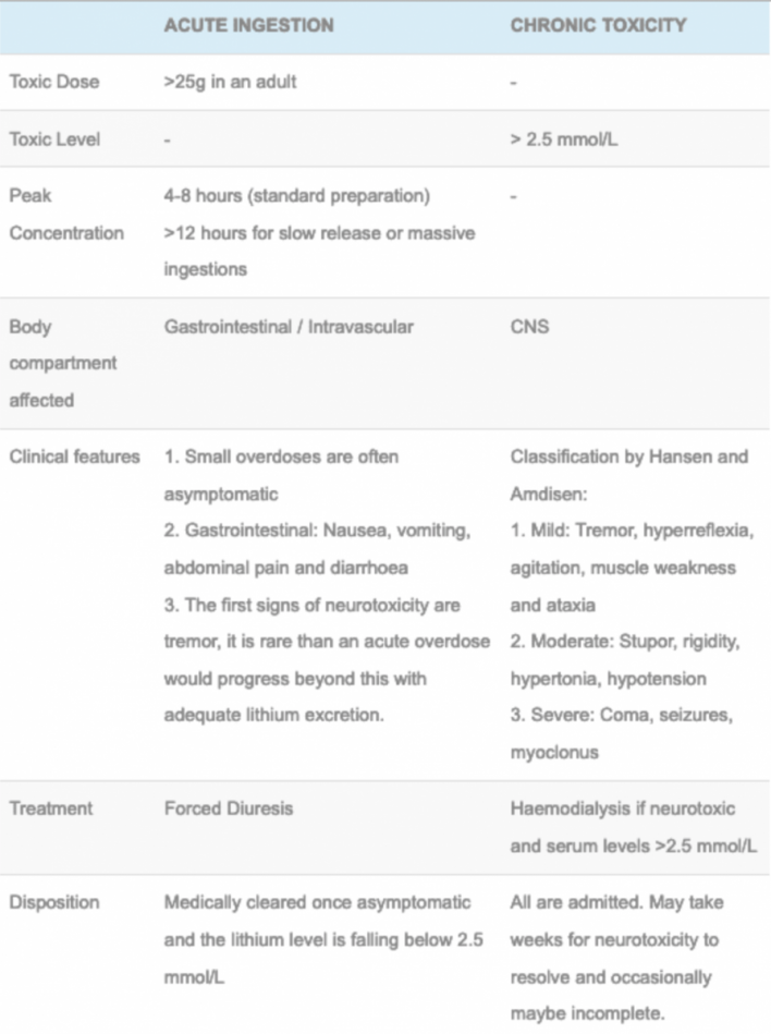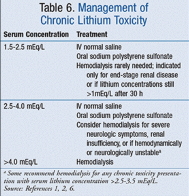 C. Lithium Level. Although the other answer choices represent substances that can certainly cause AMS, and the differential is broad (get a blood glucose!), this patient has CNS toxicity from chronic lithium toxicity. It is important to identify an elevated lithium level early on in your evaluation as chronic lithium toxicity can progress to seizures, coma, and death if untreated. However, it should be noted that this is otherwise a clinical diagnosis and that lithium serum levels do not necessarily correlate with severity of CNS effects. The patient’s history of poor intake and dehydration on exam is concerning for a decreased GFR, and his renal excretion of lithium is likely impaired. He needs significant IV hydration and may require hemodialysis if the serum lithium level is greater than 4.0 mEq/L. Keep in mind that acute lithium toxicity after a large ingestion presents with predominantly GI symptoms as CNS uptake requires time to manifest neurotoxic effects.