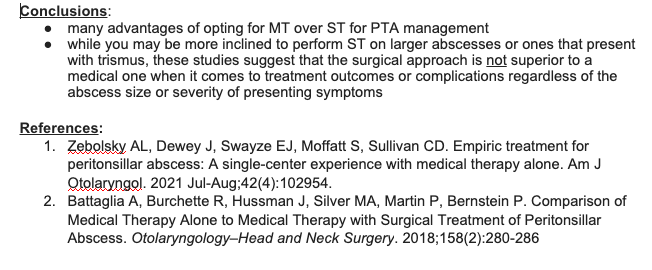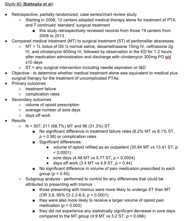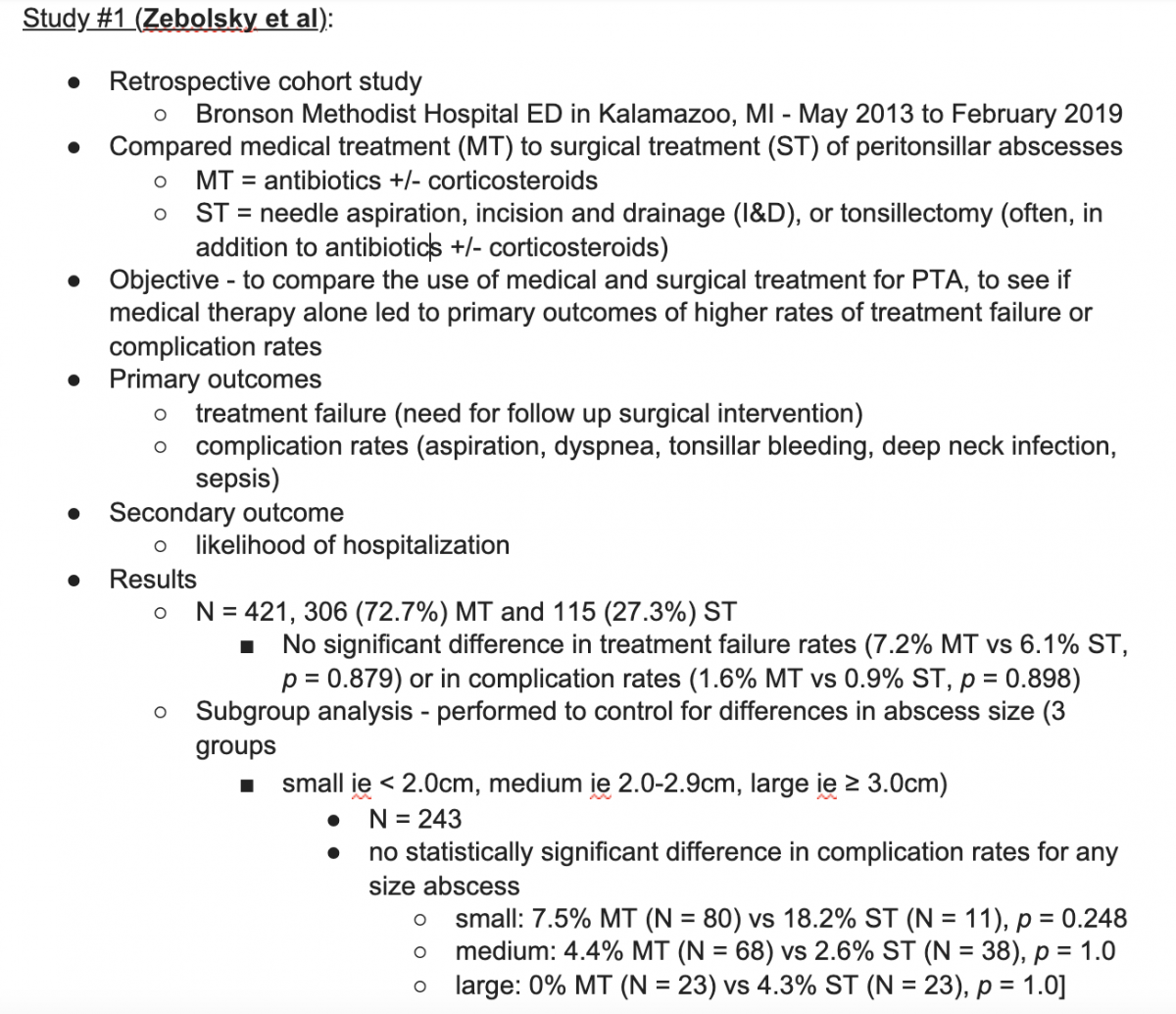 Critically Appraised Topic: Surgical vs Medical Management of Peritonsillar Abscess