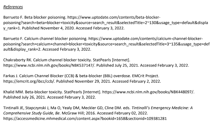 Beta-Blocker & Calcium Channel Blocker Toxicity